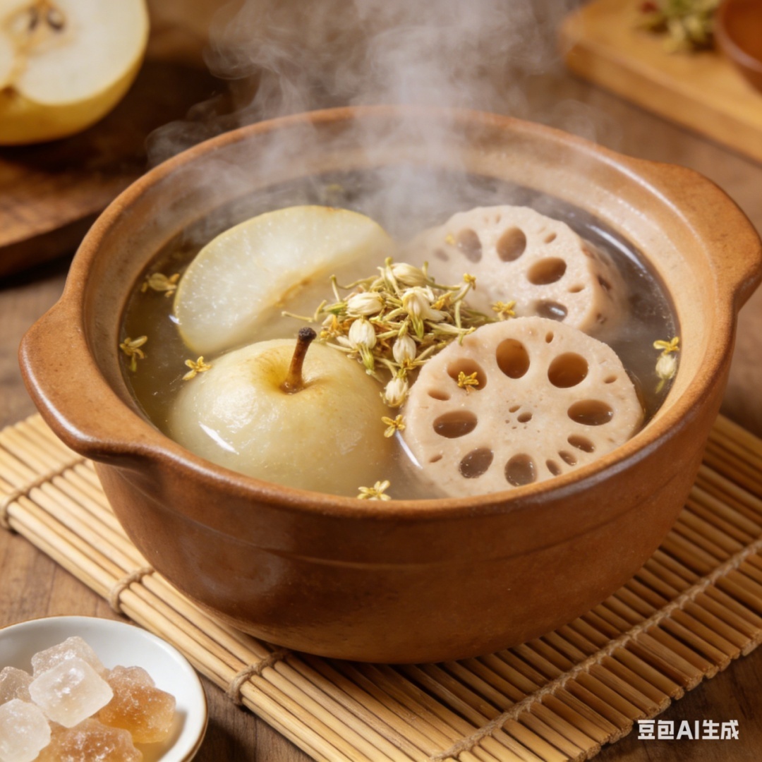功效:此汤有清热解毒、生津化痰之功,对于内热较盛导致的咽痛、疖肿等具有一定疗效。由于食材寒凉,脾胃虚寒者不宜服用。